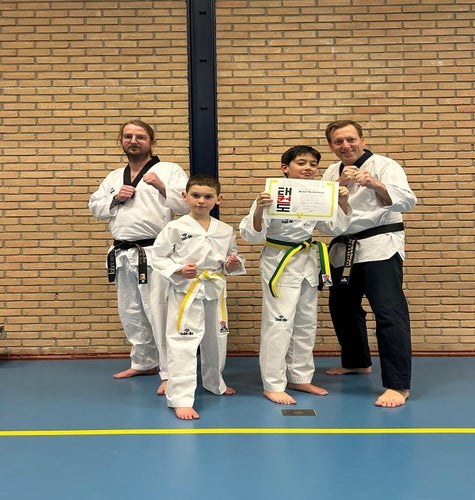 Ivan Sandikromo mocht opgaan voor zijn groene slip (7e geup). De theorievragen waren bijna allemaal goed. Daarna heeft hij de onderdelen taeguek Il Jang & I Jang (Taeguek 1&2), Sambo taeryon (driestapsparring) en trappen op kussen mooi uitgevoerd.